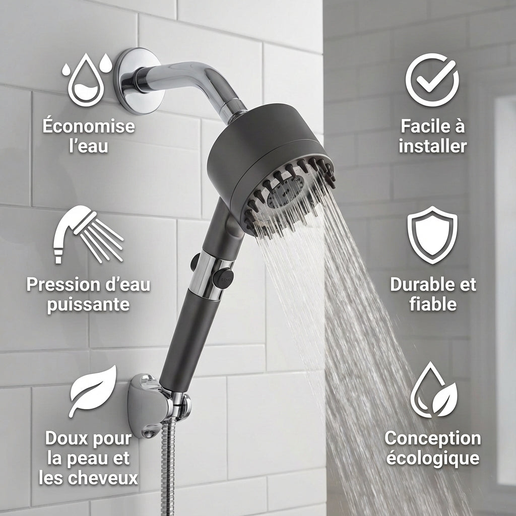 Economisez lâeau, profitez dâun jet puissant et prĂ©servez la douceur de votre peau et de vos cheveux dĂšs la premiĂšre douche. Satisfaction totale ou remboursĂ© !